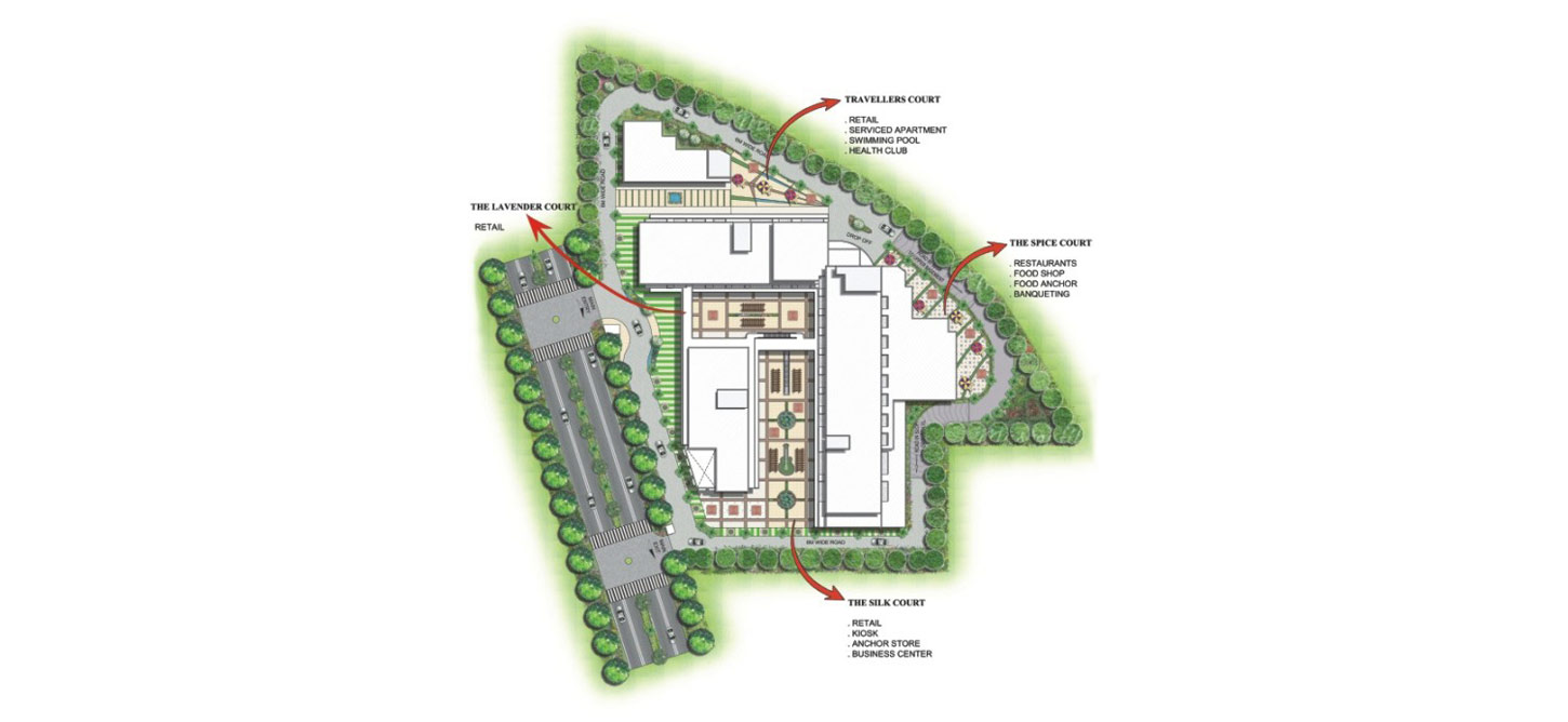 Merchant Plaza is a mélange of elements designed to please all of the senses: Vision, Hearing, Touch, Fragrance and Taste. Merchant Plaza has been conceptualized to address three distinct end-uses: Retail, Commercial and Hospitality. Plazas, courtyards are interwoven through the retail boulevards to present them with interesting vistas in the different zones.